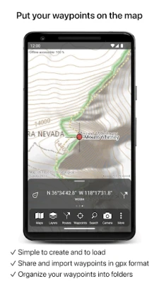 * Official topographic maps of many countries, including USA, Great Britain (OS Explorer), New Zealand and Australia are available as in-app purchase.